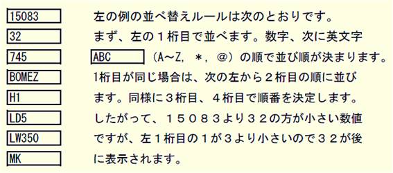 上記のNo.例を小さい順に並べ替えると次の順になります。